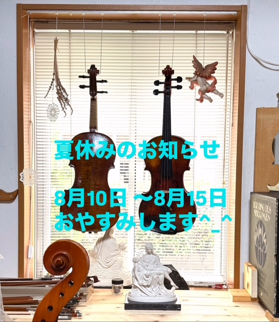 夏休みのお知らせ 8月10日(日)から8月15日(金)まで工房をお休みします。 お知らせ 2025.08.01 8月16日(土)10時から営業します。 8月17日(日)18日(月)は定休日です。 8月19日(火)10時から通常通り営業します。 よろしくお願い申し上げます。